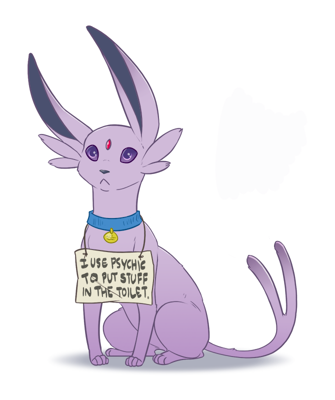 On July 11th, 2014, DeviantArtist[3] sabretoothlioness uploaded an illustration of the Pokemon Espeon wearing a sign confessing to using the move “psychic” to place objects in the toilet (shown below, left). On July 12th, Tumblr user tamagoomy[2] posted an illustration of the Pokemon Goomy holding a sign confessing to using the “rain dance” move inside a home (shown below, right). In the first week, the post gained over 175 notes.